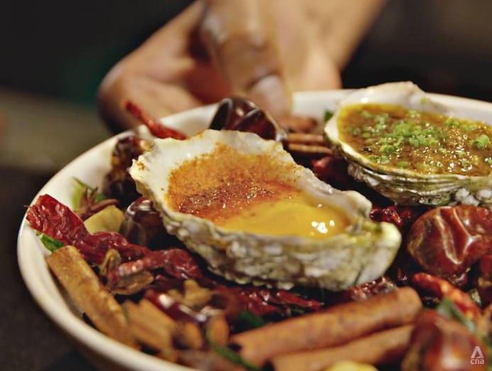 As Thevar constantly experiments with new dishes, his grandmother's recipes are never far from his mind. One of his favourites is her rasam, a savoury soup cooked with anchovy sambal and eaten with rice and fried eggs. He wanted to put it on his menu, so he spun a unique version using Irish gaelic oysters topped with rasam vinaigrette and sambal oil.